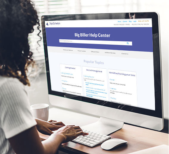 The Top Echelon Help Center is an expansive and comprehensive guide for Top Echelon customers and Big Biller users. The Help Center contains nearly everything outlined above, including: